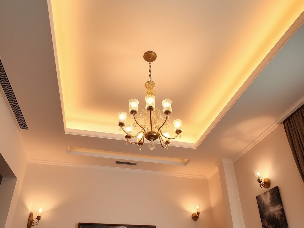 Kinkiety, montowane na ścianach i skierowane światłem ku górze, efektywnie „podnoszą” optycznie sufit. Dodaj także taśmy LED wzdłuż krawędzi sufitu lub w niszach, co poprawi oświetlenie i poczucie przestronności w pomieszczeniu. Unikaj wiszących lamp i żyrandoli, które obniżają wizualnie wysokość wnętrza.