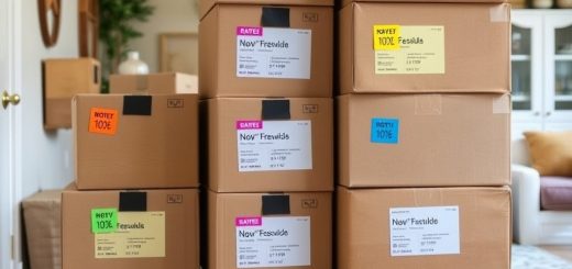 - Dokładne opisy – zapisuj zawartość i nazwę pomieszczenia na każdym kartonie.